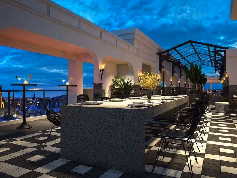 Đến với Pistachio Hotel Sapa, du khách sẽ được đắm mình trong một không gian sang trọng. Nhìn từ xa, khách sạn như một tòa lâu đài ẩn hiện trong màn sương mờ ảo. Bên trong là những họa tiết, hoa văn đẹp mắt, kết hợp với tông màu trầm nền nã và những vật dụng quen thuộc được biến tấu khác lạ. Đặc biệt, xu hướng “vinh danh bản sắc” đã xuyên suốt các chủ đề nội thất của khách sạn.