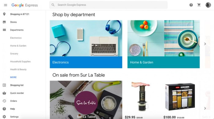 Google Express cho phép bạn nhận giao hàng trong ngày đối với thực phẩm, đồ điện tử, sách… Dịch vụ này có sẵn trên tại Hoa Kỳ. Bạn thường có thể nhận được giao hàng miễn phí trong ba ngày cho các đơn đặt hàng trên 25USD trên Google Express.