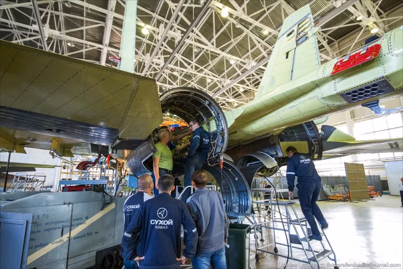 Dây chuyền sản xuất Su-35 tại nhà máy chế tạo máy bay mang tên YA Gagarin tạiKomsomolkom-on-Amur. (KnAAZ).