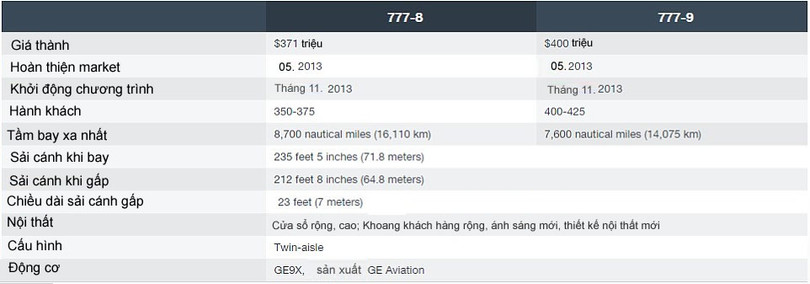 Những chiếc 777X sẽ là máy bay phản lực hai động cơ lớn nhất và hiệu quả nhất trên thế giới, mức tiêu thụ nhiên liệu thấp hơn 12% và chi phí vận hành thấp hơn 10% so với các máy bay đối thủ cạnh tranh.