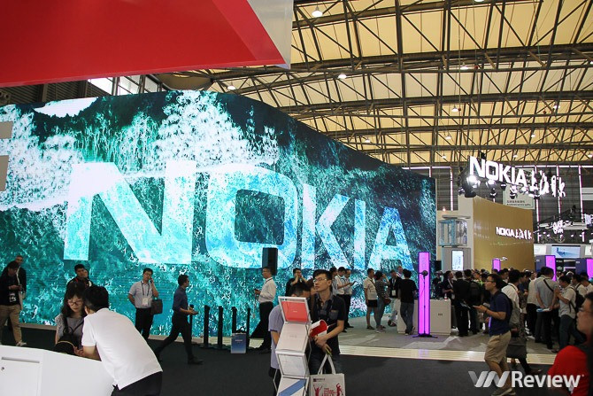Nokia có khu trưng bày khá hoành tráng, nổi bật với một màn hình kích thước lớn được uốn cong.