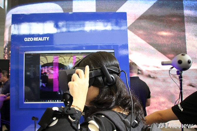 Khách tham quan được trực tiếp trải nghiệm những video quay từ OZO bằng kính VR chuyên dụng Oculus Rift.