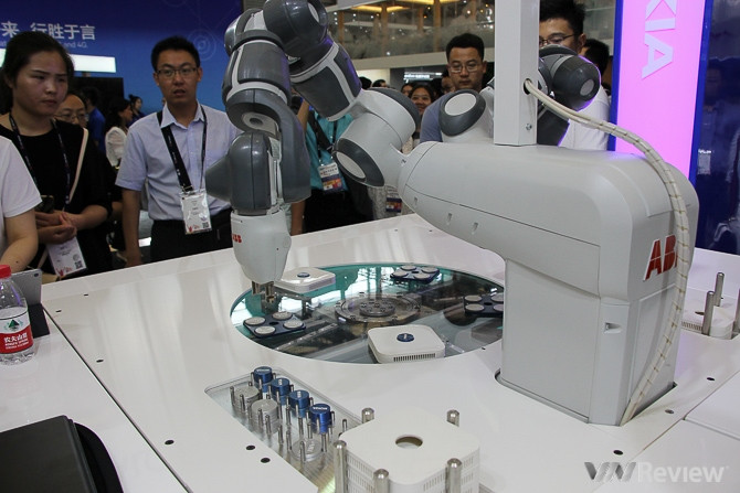 Một robot tự động hóa của Nokia với khả năng lắp ráp chính xác từng chi tiết nhỏ trong sản phẩm.