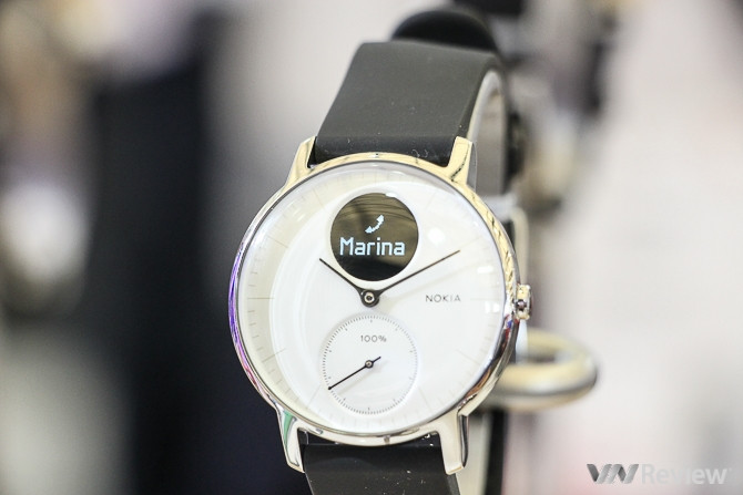 Những chiếc đồng hồ thông minh Withings (thương hiệu được Nokia mua lại vào năm ngoái) cũng được trưng bày tại triển lãm. Withings Steel có có kiểu dáng bắt mắt, trẻ trung, sử dụng hệ thống kim giờ, kim phút thực sự chứ không phải màn hình LCD hay OLED, gần gũi với đồng hồ truyền thống.