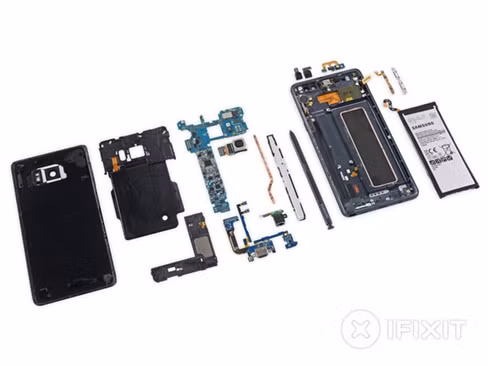 Dẫu vậy, những phát hiện từ các bậc thầy về phẫu thuật phần cứng iFixit cũng cho thấy một điều là Galaxy Note 7 cũng không mấy dễ dàng sửa chữa. Theo đánh giá của iFixit, Galaxy Note 7 chỉ đạt 4/10 trong đó 10 là điểm số tương ứng với thiết kế dễ sửa chữa nhất. Lý do cho việc Galaxy Note 7 không được đánh giá cao về khoản dễ dàng thay thế sửa chữa theo iFixit là vì mặt kính trên chiếc smartphone này rất dễ vỡ nếu thiếu kinh nghiệm trong thao tác. Hãng cũng đã “bơm” vào mặt kính phía sau Galaxy Note 7 rất nhiều keo để cố định và chính điều này càng gây khó cho các kỹ thuật viên hơn trong quá trình rã máy. Thêm vào đó, việc tháo rời pin dù Samsung hỗ trợ cũng là một điều không hề giản đơn vì hãng cũng không hề tiết kiệm chất kết dính để cố định pin vào thân máy.
