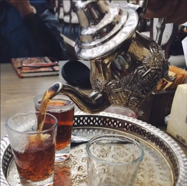 Người Ma-rốc tận hưởng trà xanh tươi mát với lá bạc hà.