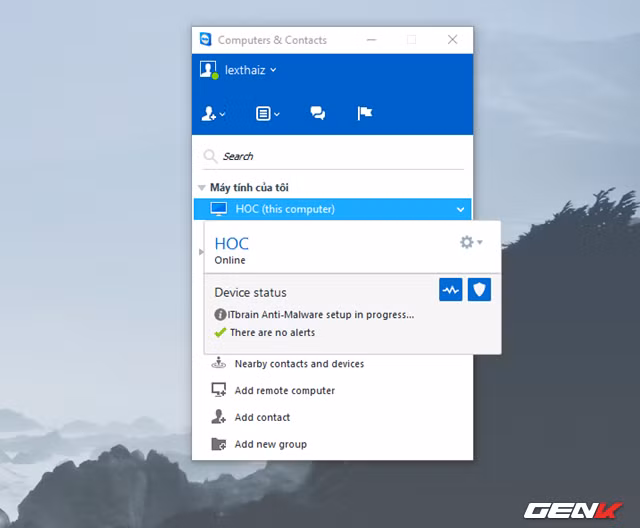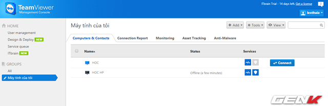 Sau khi hoàn thành việc khởi tạo tài khoản, tên máy tính sẽ xuất hiện ở cửa sổ Computers & Contacts của TeamViewer.