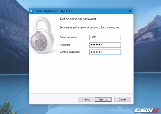 Hãy nhấn vào Next ở hộp thoại Unattended access để sang bước thiết lập tên và mật khẩu cho máy tính.