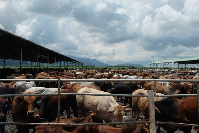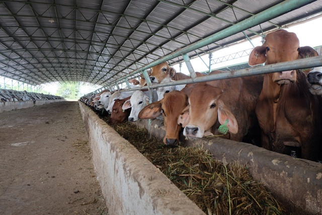Đàn bò mới được nhập về có trọng lượng khoảng 250kg mỗi con, được nuôi trong chuồng với thức ăn công thức.