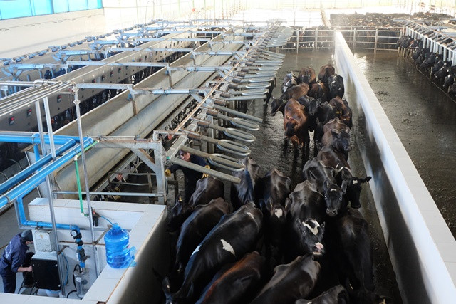 Mỗi ngày, một con bò được vắt sữa 2 lần cho khoảng 25 lít sữa/ngày.