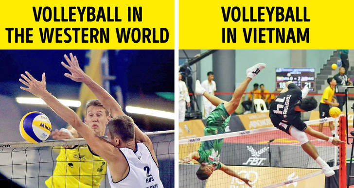 Người Việt Nam có một tình yêu tuyệt vời cho thể thao. Bóng đá và bóng chuyền đặc biệt phổ biến. Bóng chuyền địa phương tương tự như bóng chuyền cổ điển chỉ với một ngoại lệ - bạn phải chơi bằng chân.