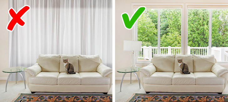 Nhà riêng thường có cửa sổ kính trong suốt từ trần đến sàn lớn mà không cần rèm cửa hoặc cửa chớp.