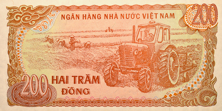 Năm 2003, tiền giấy polyme tổng hợp thay thế tiền giấy. Bạn không còn lo lắng tiền bị ướt và không dùng được nữa. Việt Nam thể hiện mối quan hệ tốt đẹp với các nước thuộc Liên bang Xô viết cũ trên các loại tiền giấy khác nhau:tờ 200 đồng (1987) mô tả máy kéo “Belarus”.