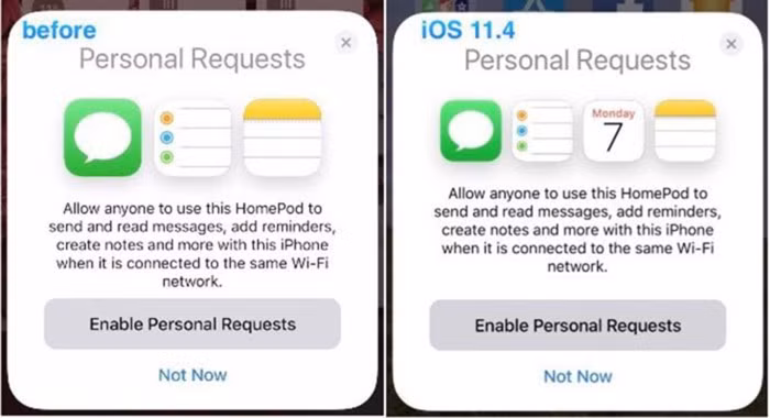 Cải tiến HomePod: iOS 11.4 hỗ trợ một số cải tiến mới dành riêng cho loa HomePod. Cũng có sẵn trên iOS 11.4 là khả năng liên kết hai loa HomePods như một cặp âm thanh nổi. Điều này sẽ cho phép quy mô âm thanh lớn hơn cũng như âm thanh sống động hơn cho những tín đồ âm nhạc muốn ghép nối HomePods với Apple TV để sử dụng với nội dung giải trí khác của bạn. Apple cũng phát triển các thuật toán để cung cấp âm thanh cân bằng.