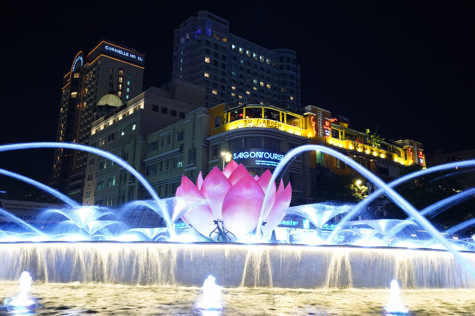 | Đài phun nước nghệ thuật trên phố đi bộ Nguyễn Huệ, trước UBND TP.HCM |