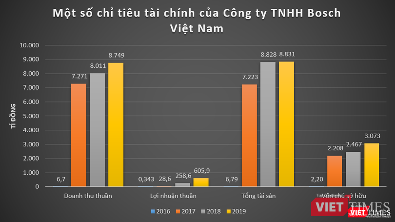 Trước đó, năm 2016, Bosch Việt Nam chỉ ghi nhận doanh thu đạt 6,7 tỉ đồng, báo lãi thuần 343 triệu đồng.