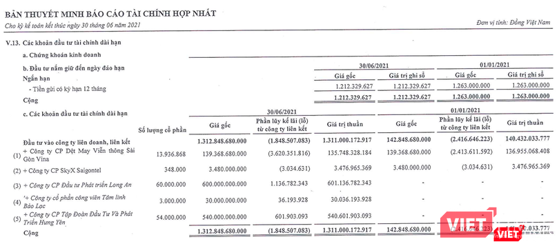 Bên cạnh đó, các khoản đầu tư vào công ty liên doanh, liên kết của Saigontel cũng tăng gấp 9 lần, đạt mức 1.311 tỉ đồng.