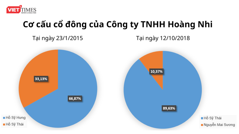 Tính đến ngày 12/10/2018, vốn điều lệ của Hoàng Nhi là 108,2 tỉ đồng trong đó có sự thay đổi về cá nhân góp vốn khi ông Thái góp 97 tỉ đồng (tương đương 89,626% vốn) và bà Nguyễn Mai Sương - sinh năm1973, có cùng địa chỉ thường trú với ông Thái - góp 11,2 tỉ đồng (tương đương 10,374% vốn).