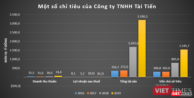 Tại ngày 31/12/2019, tổng tài sản của Tài Tiến đạt mức 3.190,3 tỉ đồng, gấp 1,8 lần so với cuối năm 2018 và 8,5 lần so với cuối năm 2017. Dù vậy, báo cáo tài chính riêng lẻ cho thấy Tài Tiến liên tục báo lỗ vào các năm 2018 và 2019.