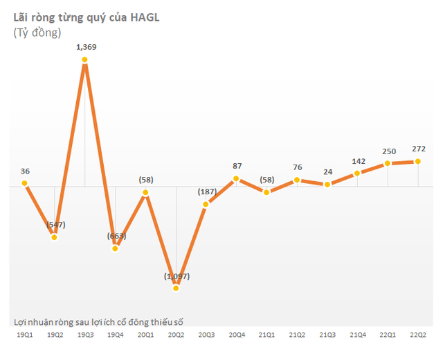 Công bố báo cáo tài chính quý 2/2022, Tập đoàn Hoàng Anh Gia Lai (HAGL, mã: HAG) làm vui lòng các cổ đông với con số doanh thu hợp nhất đạt 1.233 tỷ đồng – tăng 125 % so với cùng kỳ năm trước và lợi nhuận sau thuế hợp nhất đạt 272 tỷ đồng – tăng 254%.