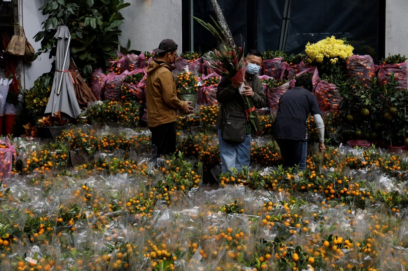 Cam, quất và quýt là những loại cây thường được người dân một số nước đem tặng trong dịp Tết cổ truyền. Người ta tin rằng những loại cây này sẽ mang tới sự thịnh vượng và sức khỏe cho gia chủ. Trong ảnh, nhiều người đang lựa mua cây quýt ở Hong Kong.