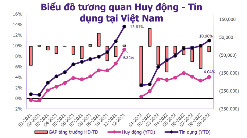 Theo đó, tăng trưởng huy động 9 tháng đầu năm 2022 chỉ đạt 4,04% trong khi chỉ tiêu này cùng kỳ năm 2021 ở mức 5,29%.