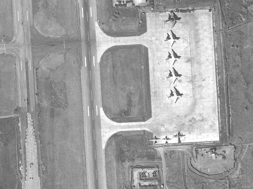 Bức ảnh chụp căn cứ sân bay Hmeimim cho biết, hiện trong căn cứ có 9 chiếc Su-24, 4 chiếc Su-34, 4 chiếc Su-35, một chiếc trinh sát và cảnh báo sớm AEW & C, một máy bay tuần tra biển và chống ngầm Il-38, 4 máy bay vận tải Il-76 và 2 chiếc máy bay vận tải An-26.