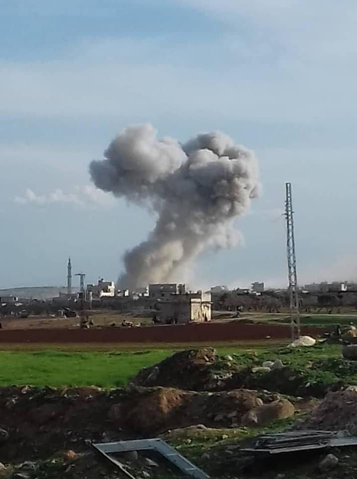 | Không quân Nga, Syria không kích dữ dội một số địa bàn do lực lượng Hồi giáo cực đoan kiểm soát ở Idlib. Ảnh: tài khoản Twitter Qalaat Al-Mudiq ủng hộ phe đối lập . |