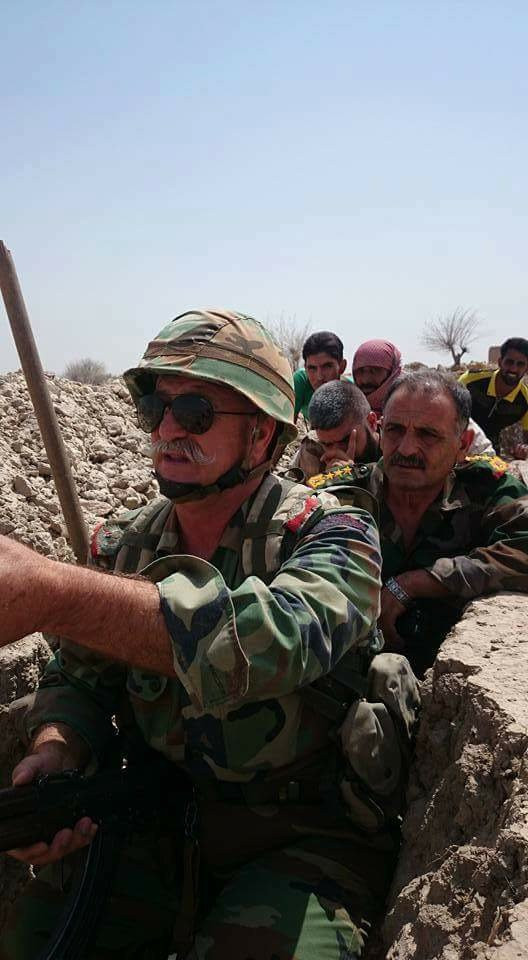 Tham mưu trưởng Sư đoàn dự bị số 17 Quân đội Syria, Tướng Haytham Ibrahim, tới thăm chiến trường và kiểm tra lực lượng sau khi đẩy lùi các nhóm chiến binh IS.