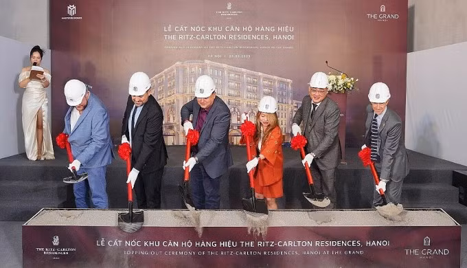 VietTimes - Masterise Homes tổ chức lễ cất nóc Khu căn hộ hàng hiệu The Ritz-Carlton Residences, Hà Nội tại 22-24 Hàng Bài, Hoàn Kiếm, Hà Nội, ngày 3/3.