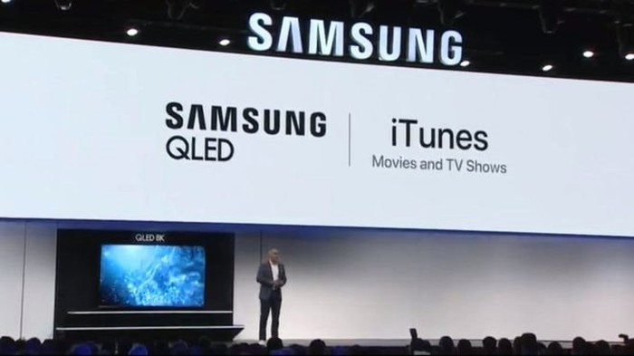 Thông báo quan trọng nhất lại đến từ Samsung, kình địch của Apple. Công ty Hàn Quốc tuyên bố sẽ đưa ứng dụng iTunes lên một số mẫu tivi Samsung, đồng nghĩa bạn có thể đăng nhập tài khoản Apple trên tivi Samsung và xem phim, chương trình truyền hình từ thư viện iTunes.