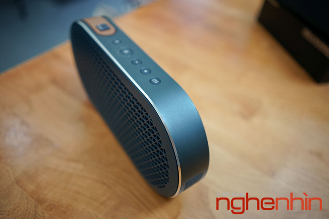 Các phím bấm điều khiển khá đơn giản và nằm hết trên đỉnh loa, phím nguồn bao quanh bởi 4 đèn LED, phím bluetooth để kết nối và ghép thiết bị, phím tăng giảm âm lượng và phím chuyển đổi giữa hai chế độ âm thanh Clear và Warm nhằm phù hợp với các nhu cầu thưởng thức nhạc khác nhau.