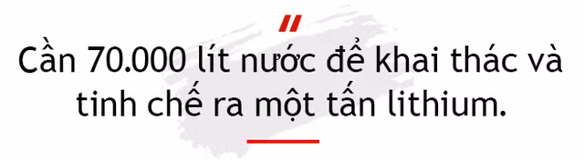 Sa mạc Atacama ở phía bắc Chile là một trong những nơi khô hạn nhất trên Trái Đất nhưng việc khai thác khoáng chất từ những bãi muối khổng lồ ở đây cần rất nhiều nước. Theo BloombergNEF, có thể mất khoảng 70.000 lít nước để tạo ra một tấn lithium.