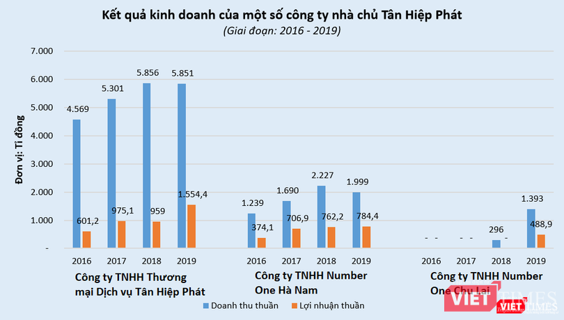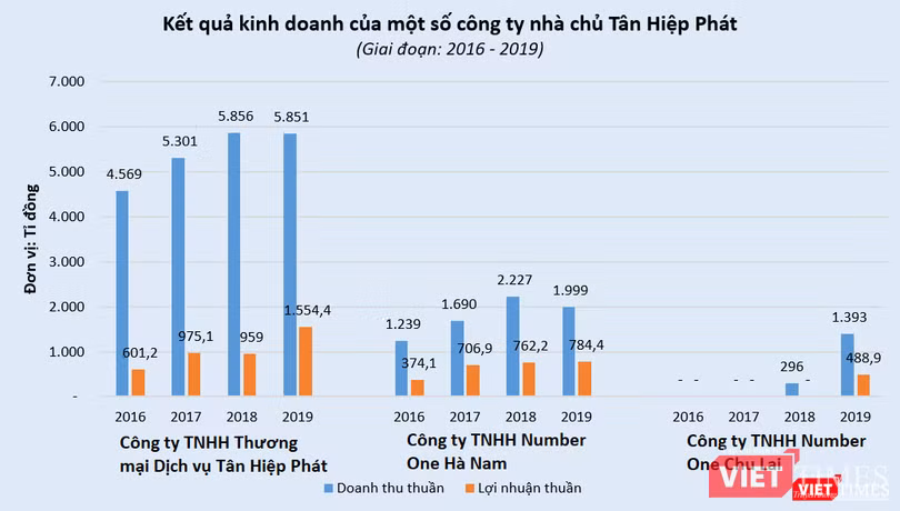 Theo dữ liệu của VietTimes, năm 2019, riêng doanh nghiệp vận hành nhà máy tại Bình Dương của Tân Hiệp Phát ghi nhận doanh thu đạt 5.850,7 tỉ đồng, lãi sau thuế ở mức 1.554,4 tỉ đồng, tương đương biên lợi nhuận ròng ở mức 26,57%.