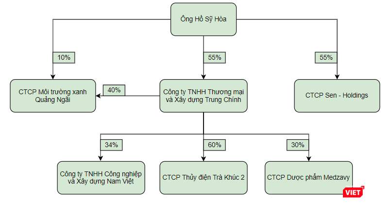 Trong khi đó, Chủ tịch HĐTV Hồ Sỹ Hòa, Tổng giám đốc Trần Quang Việt và ông Hồ Văn Hương còn là cổ đông sáng lập, lần lượt nắm giữ 55%, 30% và 15% cổ phần của CTCP Sen - Holdings. Pháp nhân này được thành lập vào tháng 12/2020 với vốn điều lệ 120 tỉ đồng, trụ sở chính đặt tại Khu đô thị mới Lê Trọng Tấn - Geleximco, xã An Khánh, huyện Hoài Đức, TP. Hà Nội, đăng ký ngành nghề kinh doanh chính trong lĩnh vực bất động sản.