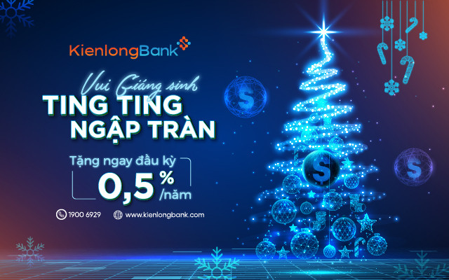 Chào đón Giáng sinh, khách hàng khi gửi tiết kiệm tại KienlongBank sẽ được tặng ngay tiền mặt trực tiếp tại quầy lên đến 0,5%/năm, áp dụng kỳ hạn từ 6 tháng trở lên. Quà tặng “không giới hạn” với các khách hàng gửi tại KienlongBank.