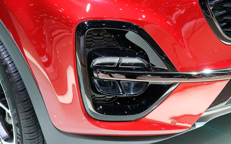 Chúng ta có thể dễ dàng nhận ra các chi tiết bên trong cụm đèn chiếu sáng trước được lấy cảm hứng từ thiết kế của chiếc sedan thể thao Kia Stinger. Hệ thống đèn pha và sương mù dạng LED sẽ có mặt trên Kia Sportage 2020 nhưng dưới dạng tùy chọn. Bên cạnh đó, việc bổ sung thêm tấm ốp gầm cản trước ít nhiều đã mang lại cho Sportage vẻ ngoài cứng cáp hơn.