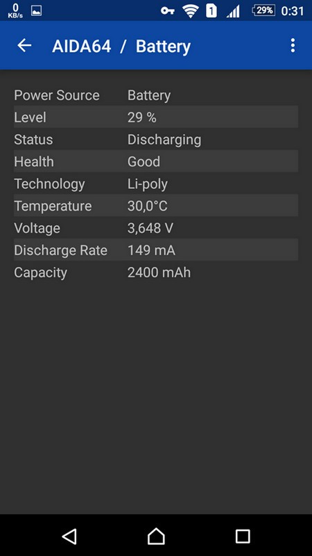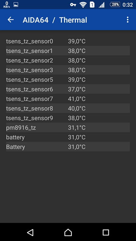 AIDA64 là ứng dụng miễn phí cho phép người dùng xem chi tiết tình trạng pin cũng như nhiệt độ pin và các cảm biến trên smartphone, từ đó giúp người dùng biết được smartphone của mình đang ở ngưỡng nhiệt độ nào và đã ở mức quá nóng hay không.
