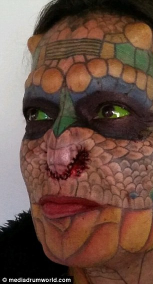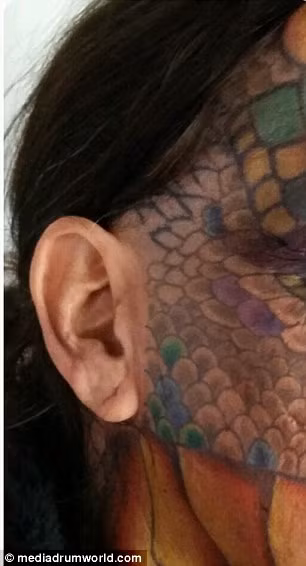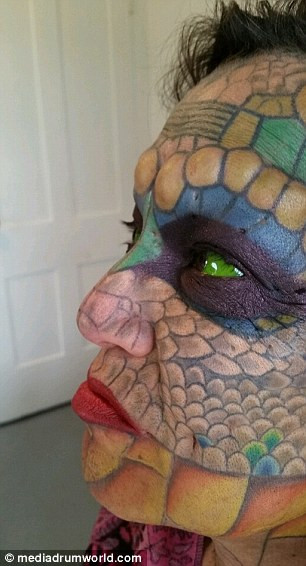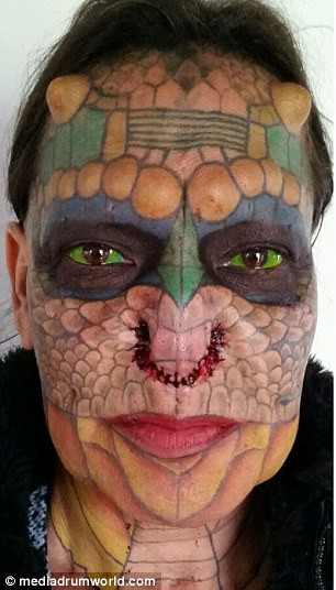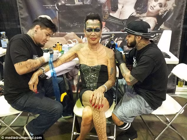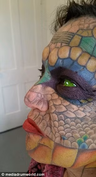 Cựu nhân viên ngân hàng đã khâu mũi, cắt tai và cấy ghép nhiều tấm kim loại ở trán. Ngoài ra, để được giống sinh vật thần thoại, người phụ nữ đã tô mắt màu xanh lá cây, xăm đầy vây lên ngực và các cánh tay. Công việc được bắt đầu từ năm 2012. Medusa cho biết, sự biến đổi vẫn chưa hoàn thành. Cùng với việc biến thành rồng, Medusa đã thay đổi giới tính từ nam sang nữ.
