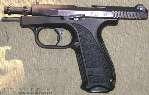 Súng GSh-18 nặng 470 gam. Nhưng tính năng chiến thuật của súng thực sự kinh khiếp, trên khoảng cách 10 m, đạn xuyên giáp có thể đi ngọt qua một tấm thép dầy 8 mm. Quân nhân có thể giữ súng đã lên đạn trong bao súng hoặc trong túi áo, quần mà không sợ súng có thể tự nổ do sốc hoặc va chạm.