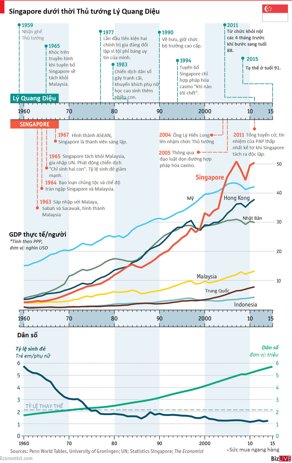 Ông Lý là lãnh đạo PAP kiêm Thủ tướng khi Singapore tách khỏi Anh Quốc, giành quyền tự trị trong mọi lĩnh vực của đất nước ngoại trừ quốc phòng và ngoại giao vào năm 1959.