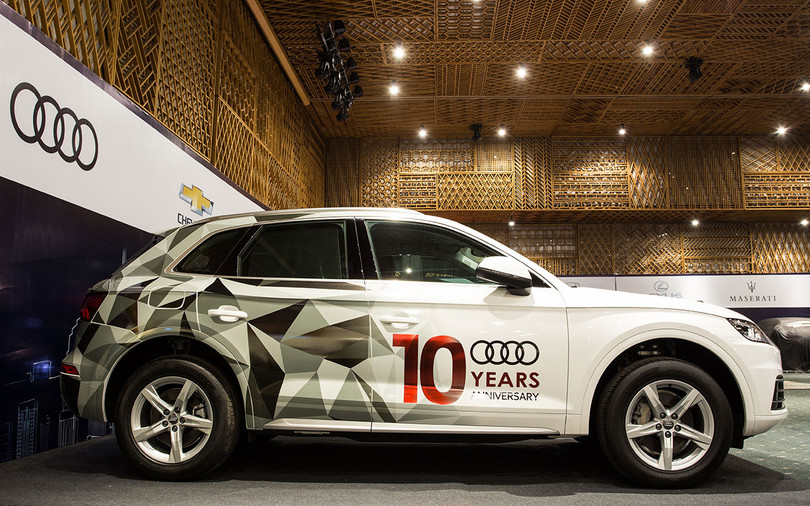 Nhà phân phối Audi tại Việt Nam cho biết gian hàng Audi sẽ trưng bày 10 mẫu xe trên diện tích 545 m2 làm nổi bật chủ đề "Audi, ngôi nhà quattro". Các mẫu xe Audi trưng bày gồm có các mẫu sedan Audi A4 và A6; Audi A5 Sportback quattro; các mẫu SUV Audi Q2; Q3 quattro, Q5 quattro và Q7 quattro.