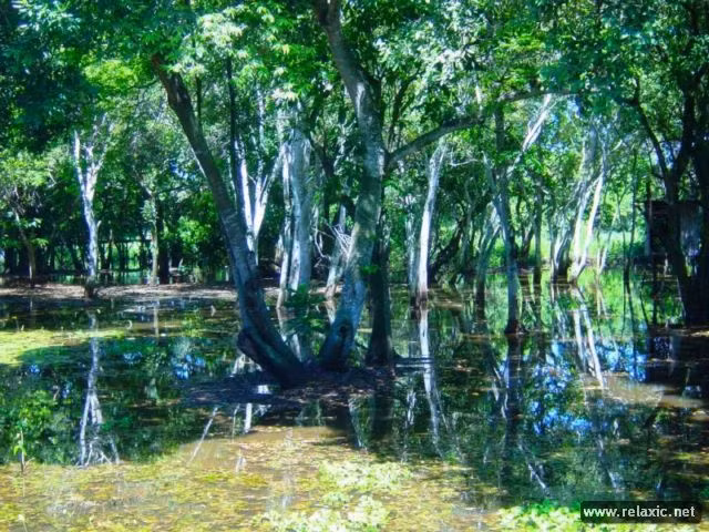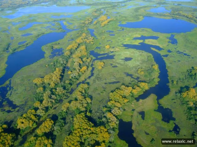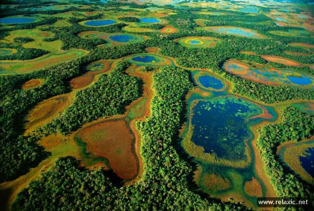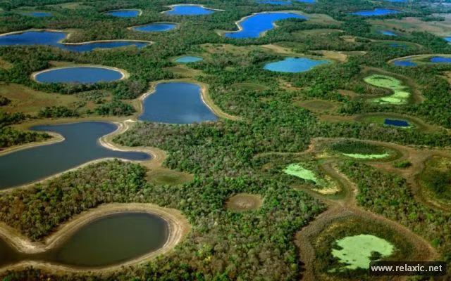 Lũ lụt trong mùa hè nóng ẩm, mưa nhiều đã biến Pantanal trở thành một khu vực hồ - đầm lầy cùng với một số vùng đất khô mùa đông, kiến tạo nên một khu vực loang lổ da báo với những khu vực đầm lầy bị cỏ mọc che phủ phần lớn, hồ nhỏ, những con sông nhỏ chảy ngoằn ngoèo, đầm nước ngập mặn và khu vực cây cỏ dày đặc.