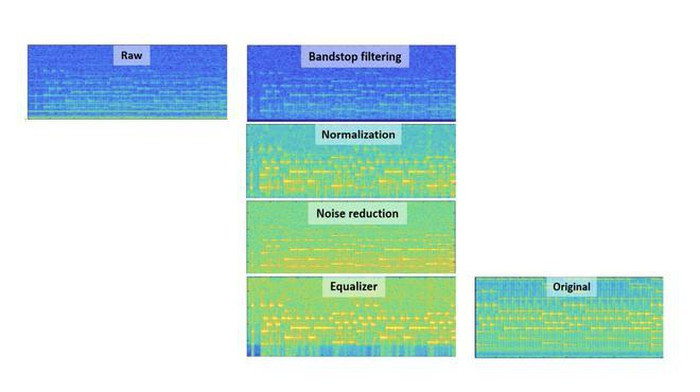 Từ âm thanh thô (Raw), phần mềm phải trải qua 4 bước khác nhau để lọc tạp âm và tái tạo lại âm thanh trong phòng của đối tượng. Ảnh: Cyber Security Labs.