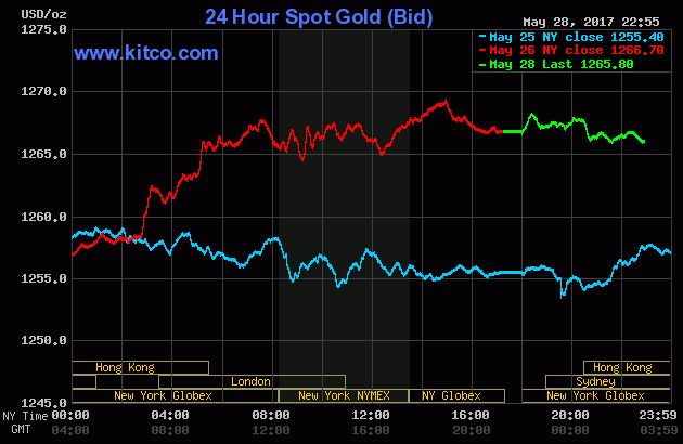 Cùng lúc, tại thị trường châu Á, giá vàng miếng giao ngay trên sàn Kitco cũng được yết ở $1.265,80/oz.