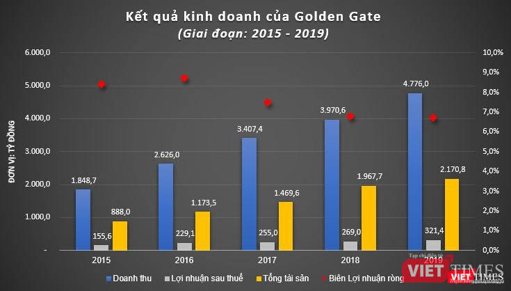Cụ thể, trong năm 2019, Golden Gate ghi nhận doanh thu thuần đạt 4.776 tỷ đồng, tăng 20% so với năm trước; lợi nhuận sau thuế lên tới 321,44 tỷ đồng, tăng trưởng 19%.