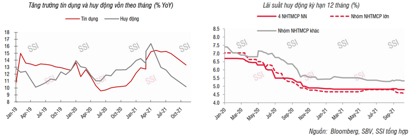 SSI duy trì quan điểm chính sách tiền tệ trong thời gian tới được kỳ vọng sẽ tiếp tục nới lỏng để hỗ trợ sự hồi phục của nền kinh tế sau đại dịch và mặt bằng lãi suất huy động - cho vay được các tổ chức tín dụng tiếp tục điều chỉnh giảm nhẹ trong quý 4/2021.