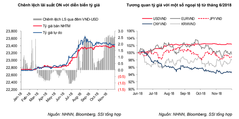 Bên cạnh yếu tố hỗ trợ từ cuộc gặp Mỹ -Trung và chênh lệch lãi suất VND-USD vẫn duy trì ở mức cao (trên 2%/năm), việc NHNN triển khai bán kỳ hạn ngoại tệ được hủy ngang vào 2 ngày 23 và 26/11 đã có tác động khá lớn về mặt tâm lý, giảm bớt nhu cầu nắm giữ ngoại tệ cũng như tài trợ thanh khoản VND cho các NHTM.