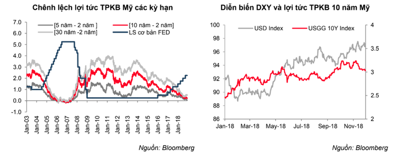 Ngày 28/11/2018, chủ tịch FED khẳng định vẫn tăng lãi suất trong tháng 12/2018 nhưng nhận định lãi suất cơ bản đồng USD đã gần sát mức trung lập nên giới quan sát kỳ vọng tốc độ thắt chặt có thể giảm dần trong năm 2019, nhờ đó mà chênh lệch lợi tức các kỳ hạn của trái phiếu Mỹ cũng có thể được nới rộng ra đôi chút.