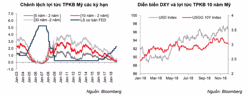 Một điểm rất đáng lưu ý là đường cong lợi tức trái phiếu của Mỹ ngày càng “phẳng”, chênh lệch lãi suất giữa các kỳ hạn thu hẹp về mức thấp nhất trong 10 năm gần đây.